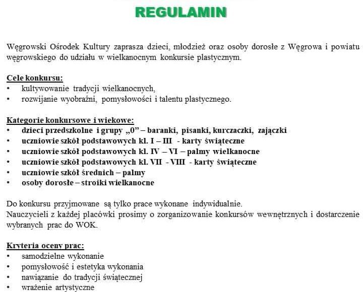 Ogłoszenie konkurs organizowany przez Węgrowski Ośrodek Kultury